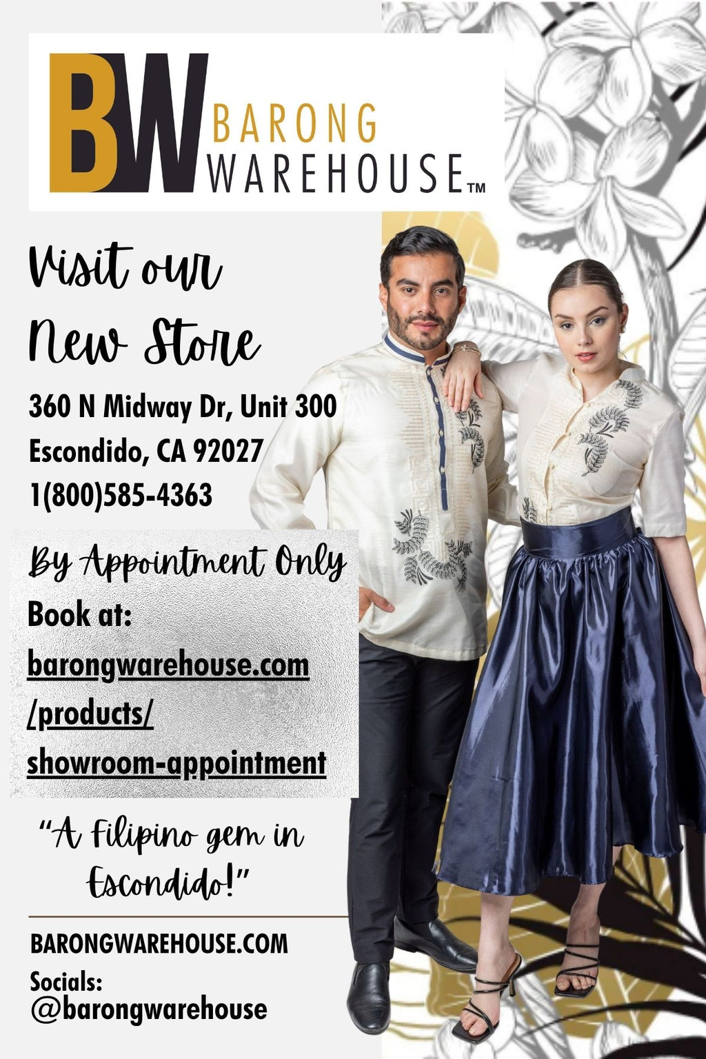 Barong Warehouse is a premium seller of Barong Tagalog; Filipiniana bolero, alampay, and dresses; and Filipino books, handicrafts and novelty goods since 1997. We have shipped barong tagalog to North America, Europe, Asia, Oceania, Middle East, and Africa. Our products are proudly made in the Philippines by traditional and indigenous artisans and/or designed or written by Filipinos. With our stellar support and top of the line products, we have made tens of thousands of customers worldwide happy and looking great with their barong tagalog and Filipiniana terno for many special occasions.