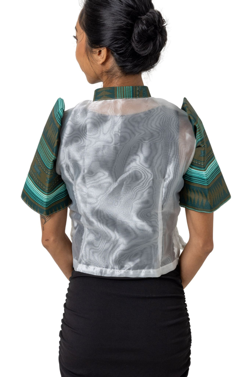 - Fabric: 50% Poly Mix (Ethnic print fabric) and 50% Organza
