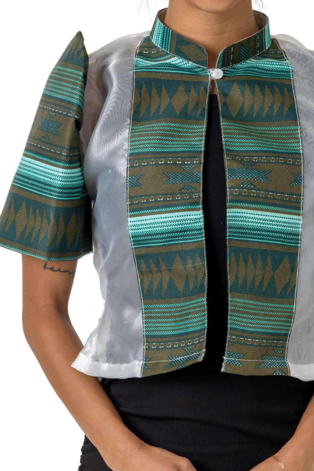 - Design: Half-jacket with Chinese collar and Filipiniana butterfly sleeves